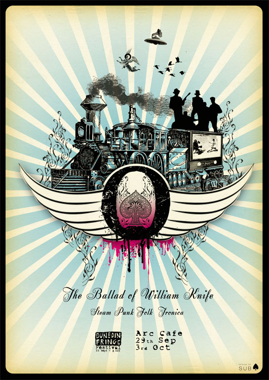 * ↩︎ - We also played another show in the Dunedin Fringe Festival (and in Lyttelton) called The Ballad of William Knife. It made a loss, and was plagued with technical issues, and no known recordings exist, so was my first ‘big budget flop’ – a sobering reality check after the previous year’s success with Ascension Band. Although, the chance to also play at Lines of Flight compensated. ↩︎